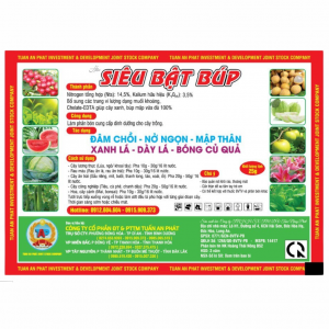 Nitrogen tổng hợp (Nts): 14,5%, Kalium hữu hiệu (K2Ohh): 3,5%; Bổ sung các trung vi lượng dạng muối khoáng; Chelate-EDTA giúp cây xanh, búp mập vừa đủ 100%.